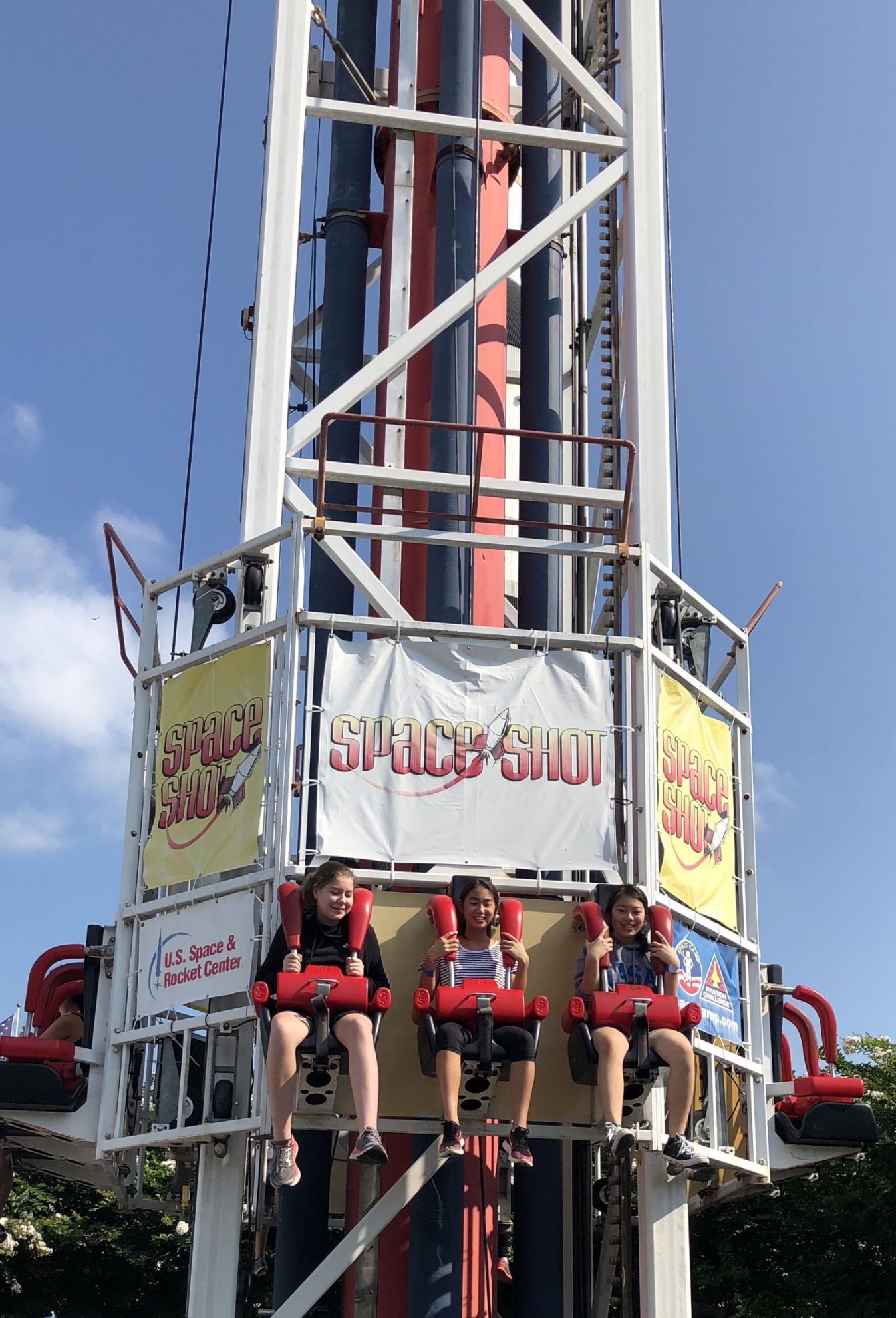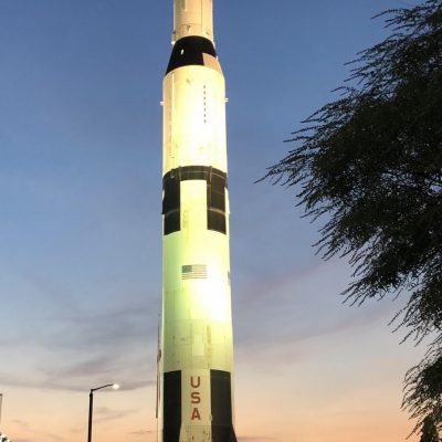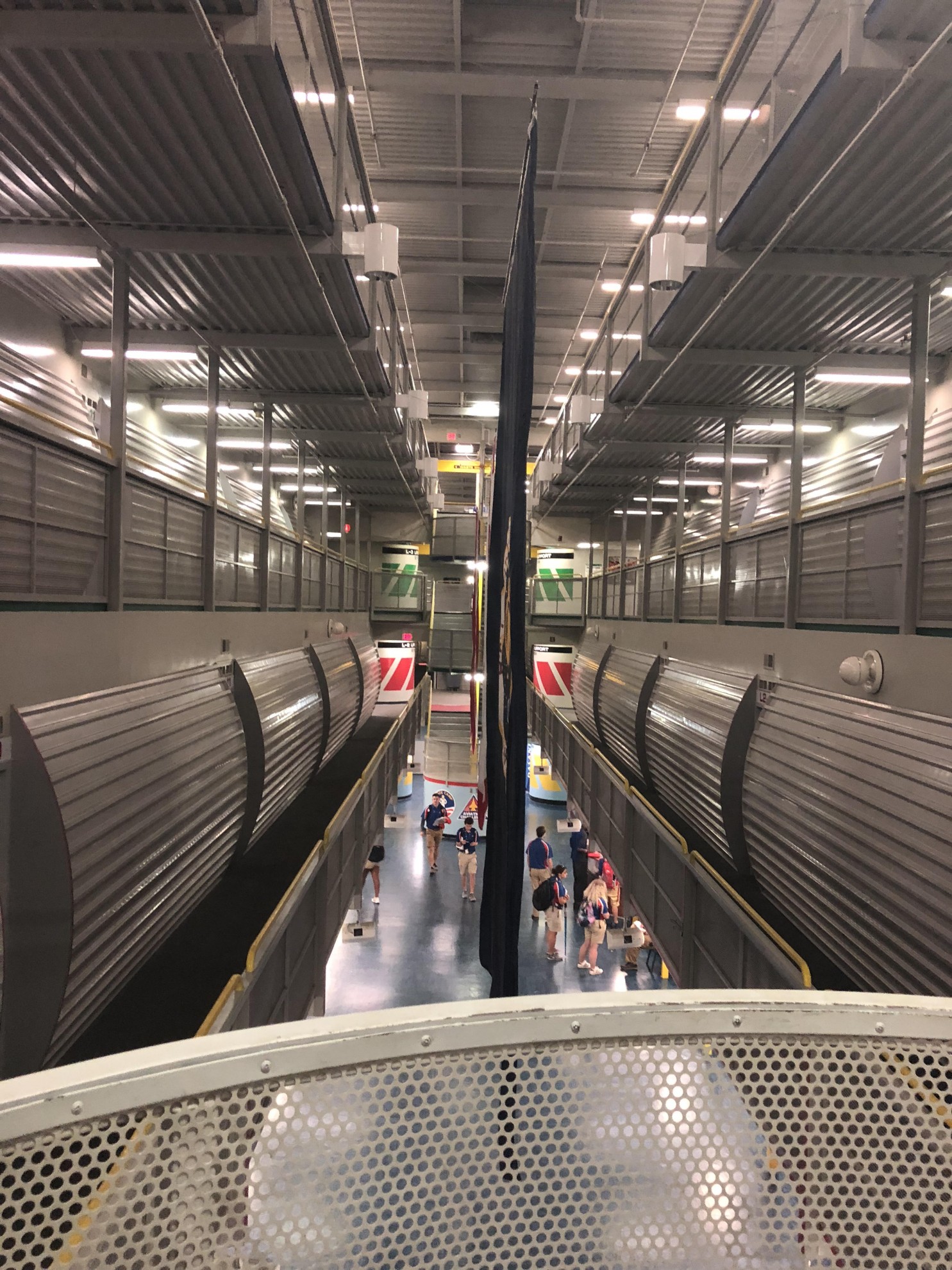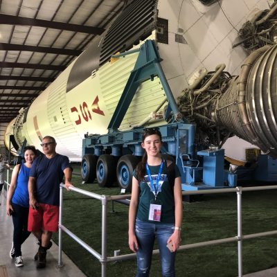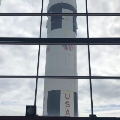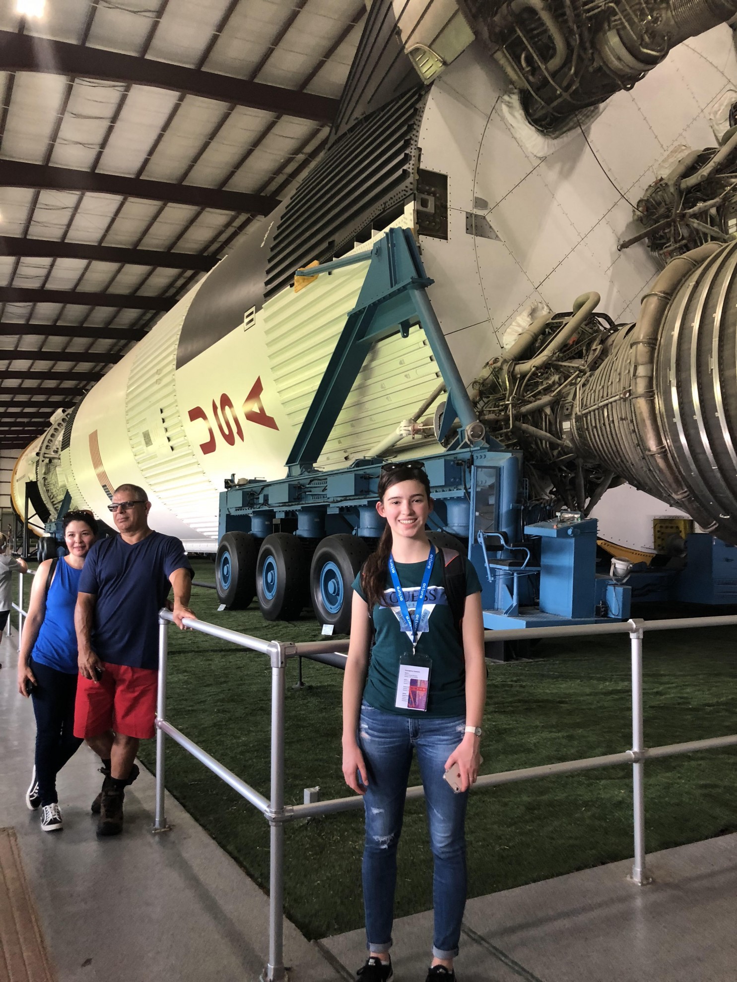 After lunch, we hopped on a tram for a tour of the campus, continuing on from our visit on Wednesday. This time, we travelled to the original Apollo Mission Control Centre which was operated in the 1960s, from which all historic communication with Apollo astronauts occurred. We could see the control room through the glass from the VIP viewing box, which was a section reserved for invited guests to watch the mission control live. The centre, which is still fitted with some of the original computers used, received the famous words, “One small step for man, one giant leap for mankind” alongside all other communication for the Apollo missions. We then headed to Rocket Park, in which, among other rockets, the Saturn V is on display – the huge rocket used in the Apollo space missions to the moon. It was very exciting to be so close to the rockets and read about each of the Apollo moon missions.
