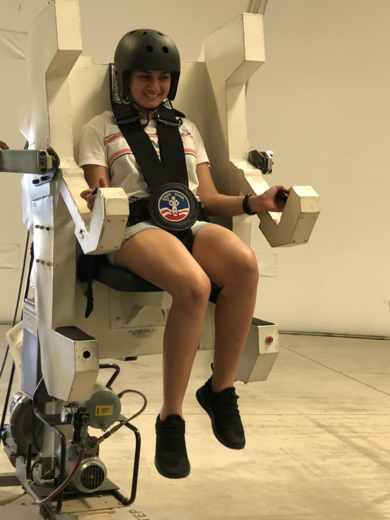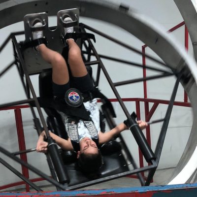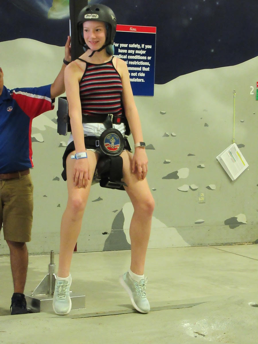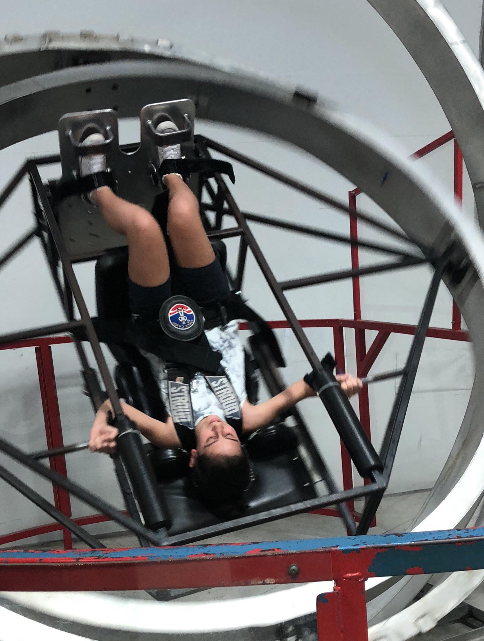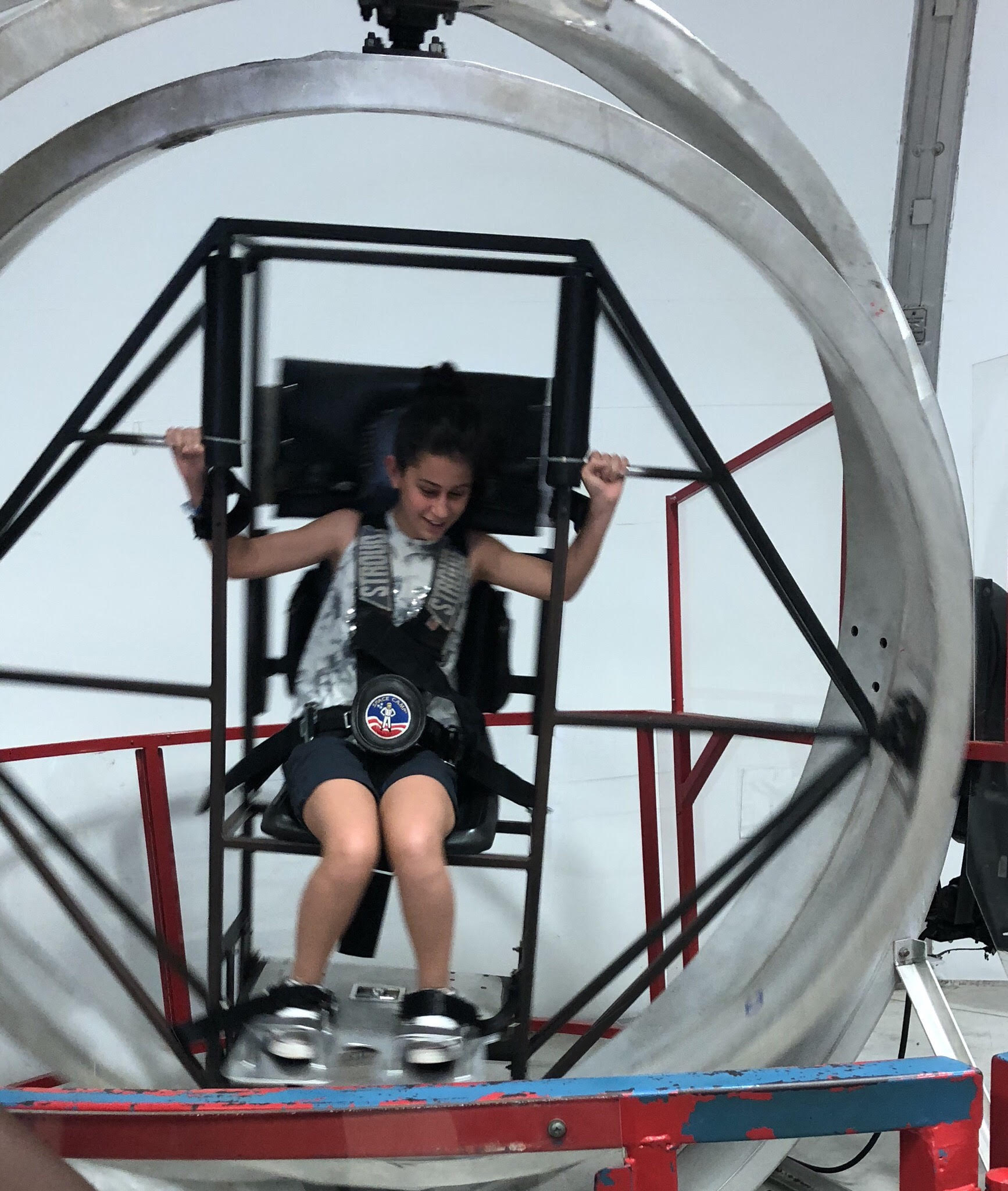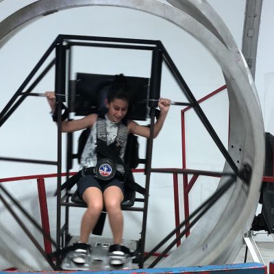 The second simulator was the all-fearing MAT– the Multi-axis Trainer. This simulator consists of rotating metal rings to train astronauts in case a space capsule spins out of control. There were many brave students who were up for the challenge!