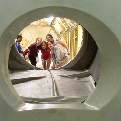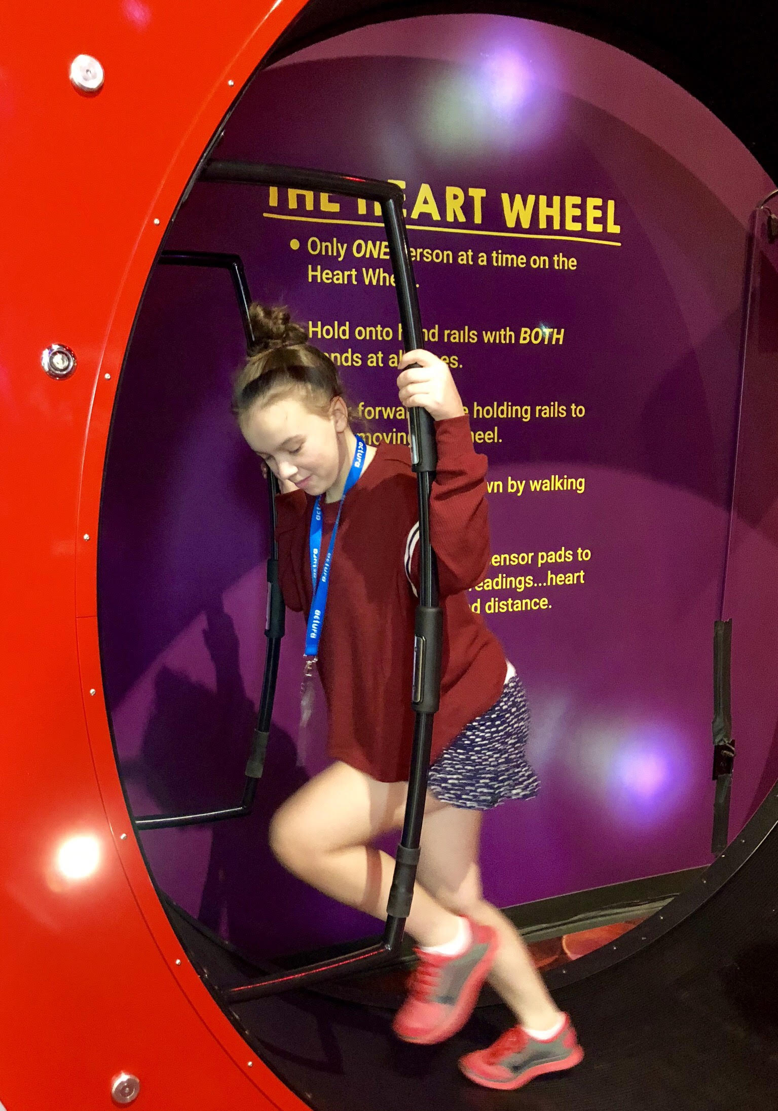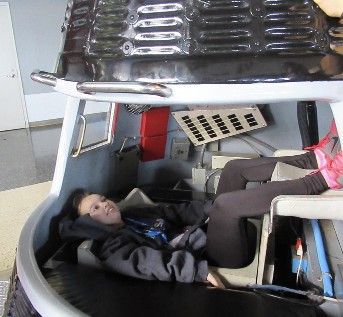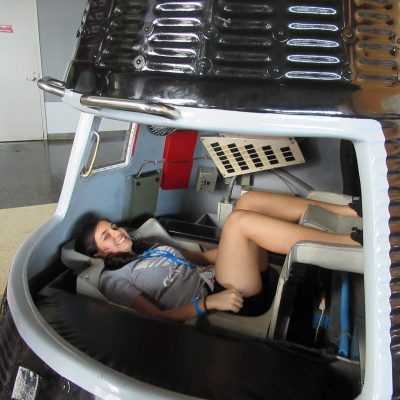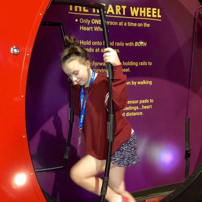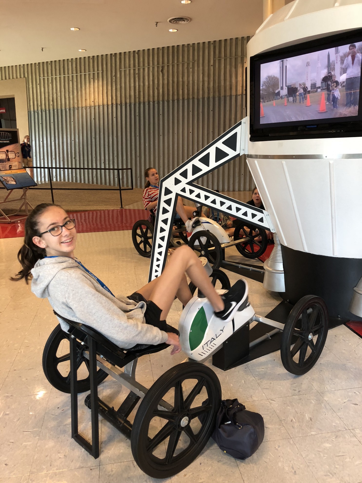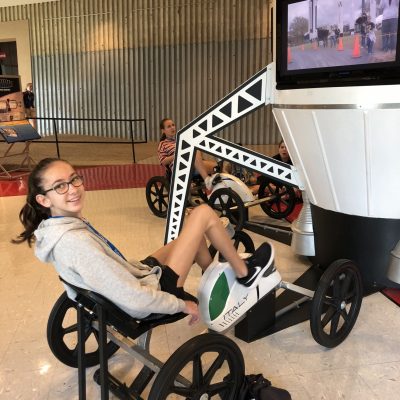 The second simulator was the all-fearing MAT– the Multi-axis Trainer. This simulator consists of rotating metal rings to train astronauts in case a space capsule spins out of control. There were many brave students who were up for the challenge!