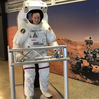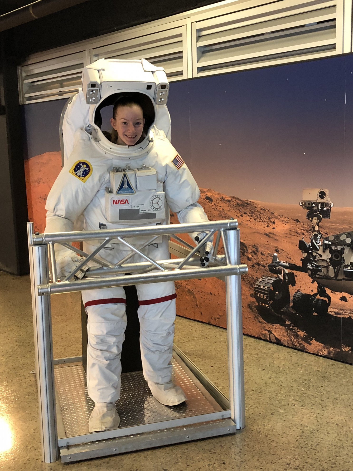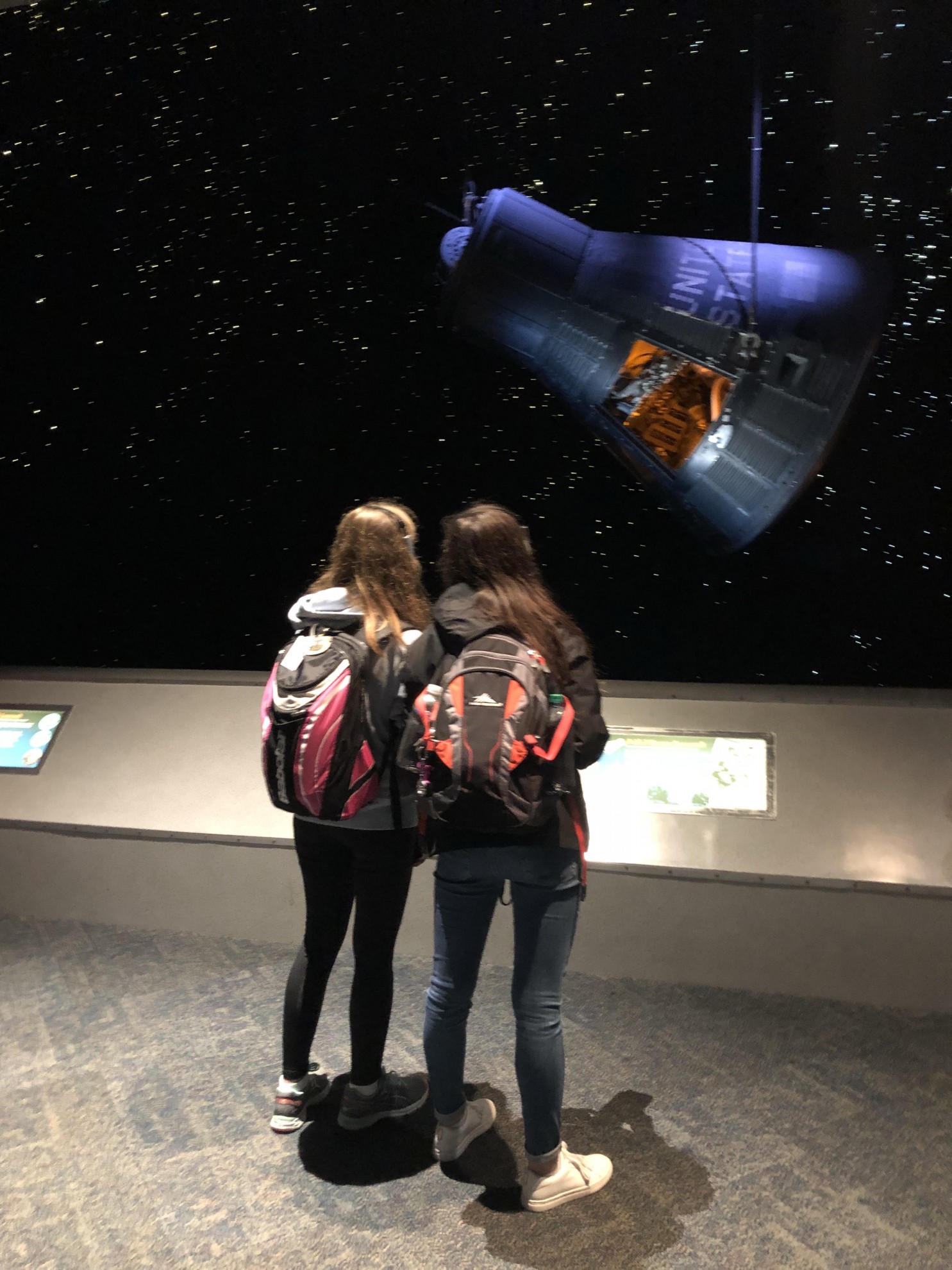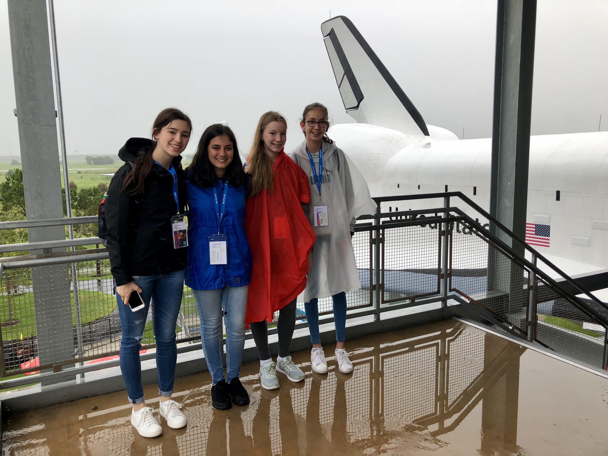 Today we went to NASA’s Johnson Space Centre. Despite torrential rains we excitedly made our way to the Centre. First we visited the Boeing 747 with the Enterprise Space Shuttle attached on its back. We were then allocated a spacecraft to research and with this in mind we explored the Space Centre and gathered our information, which included an audio tour and we got to touch a 3.8 billion-year-old moon rock! After researching we had an American lunch at the cafeteria and then we went on a tram tour to the vehicle mock-up facility and had a skywalk to see all the different types of spacecrafts and space exploration robots.