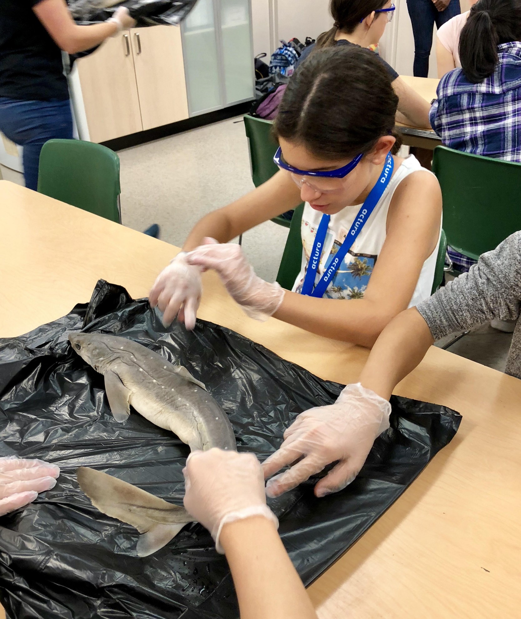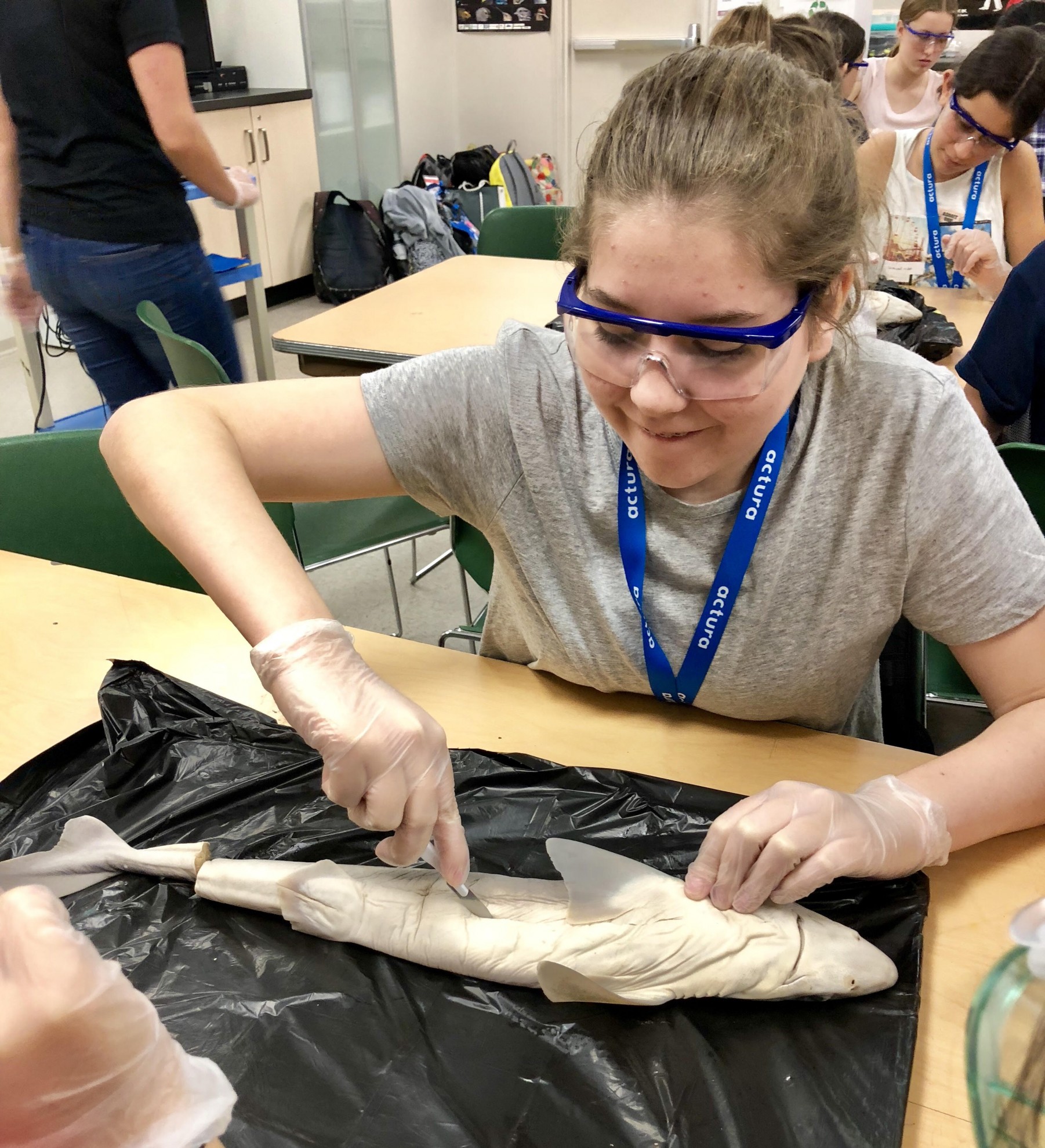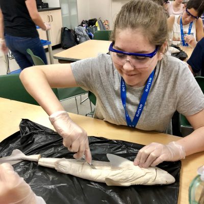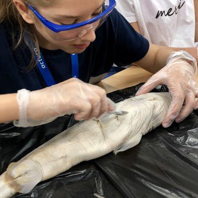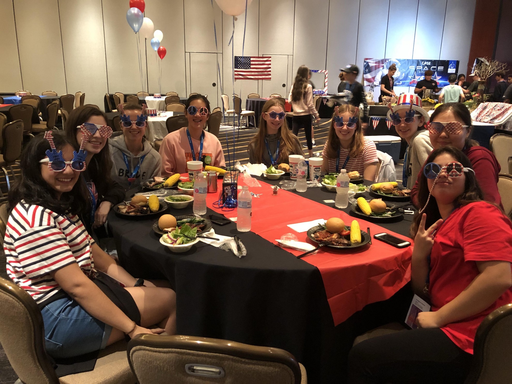 Once arriving back at the hotel We were welcomed to a American decorated Ballroom for the Independence Day BBQ dinner. The food was delicious and made us all feel part of the culture. There was a photo booth there too and we had lots of fun taking many photos in American themed costumes. After working on our projects a bit more we reflected on another amazing day and went off to bed, waiting in anticipation for our Biological Sciences day tomorrow at The Cell lab and the shark dissection.