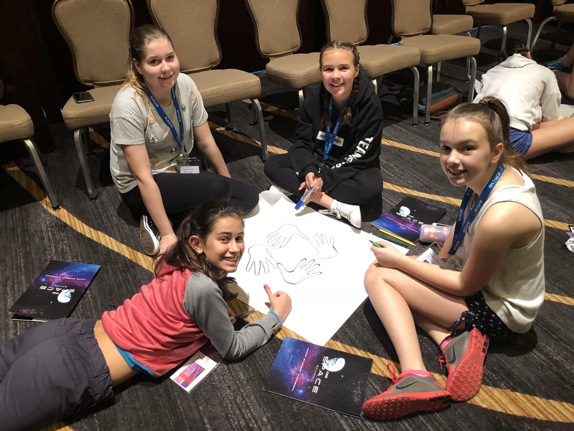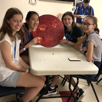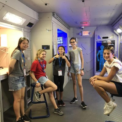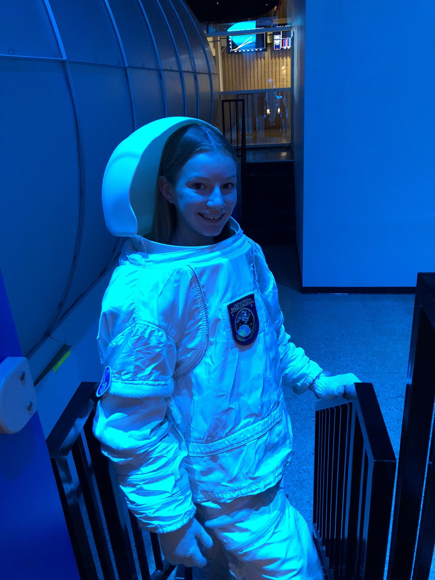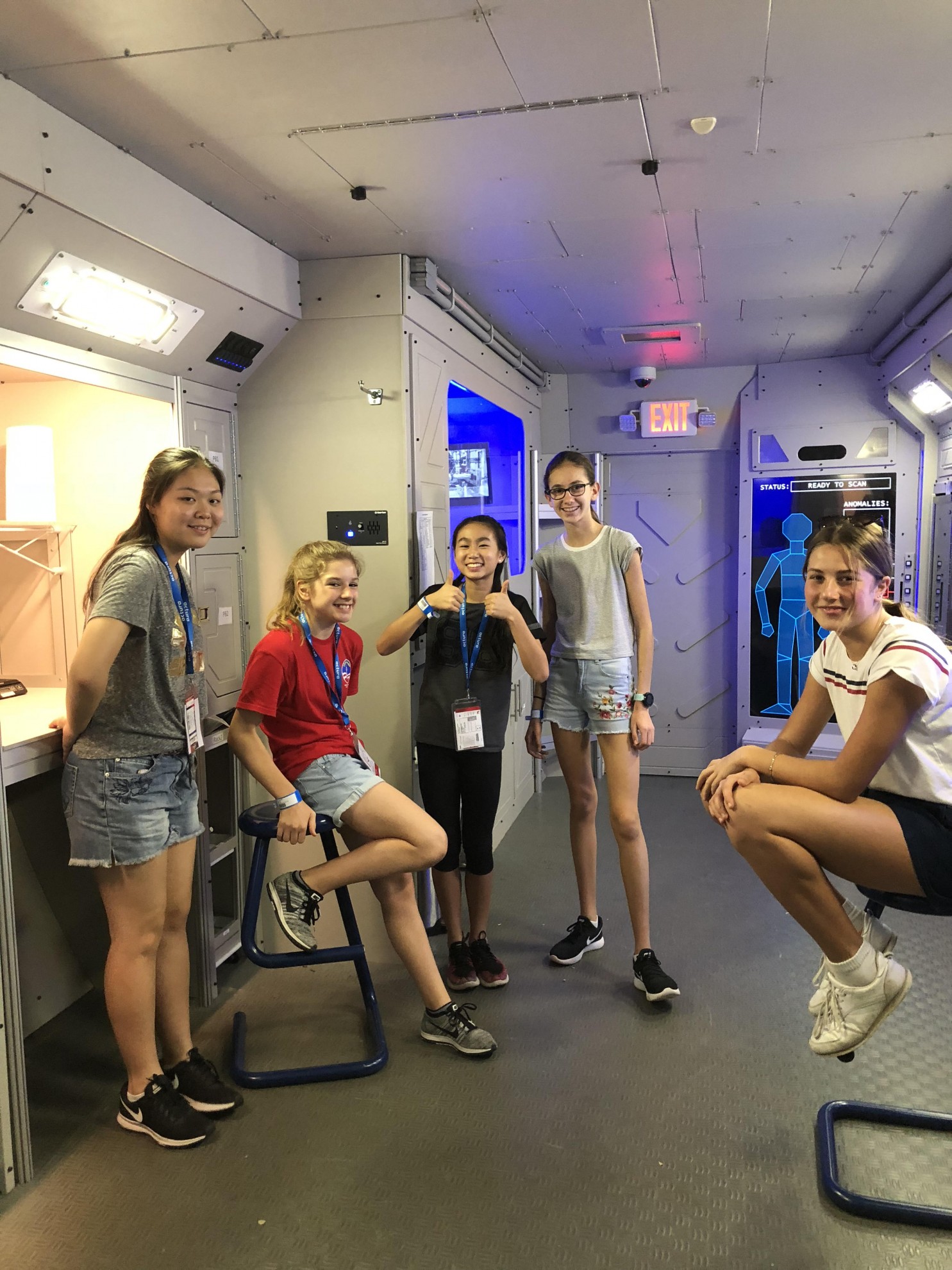 We woke up on day four of Space School to sunny skies, a good sign for the busy day ahead. Arriving downstairs before breakfast, we took part in our daily dancing activity to get us moving. Today’s routine involved some energetic cheerleading choreography!