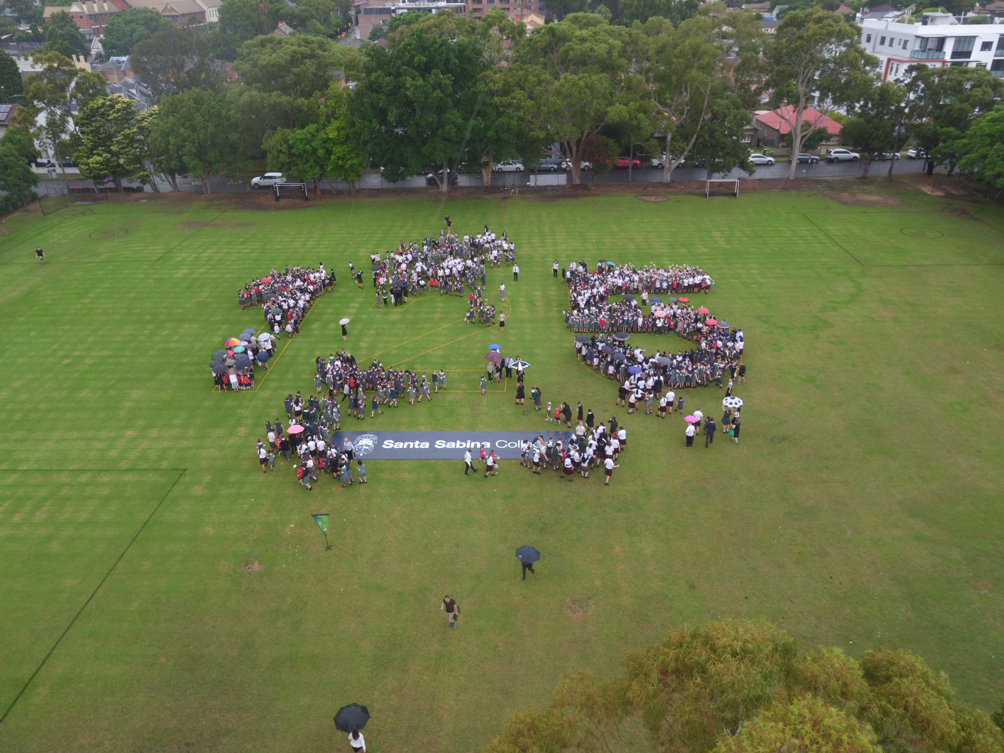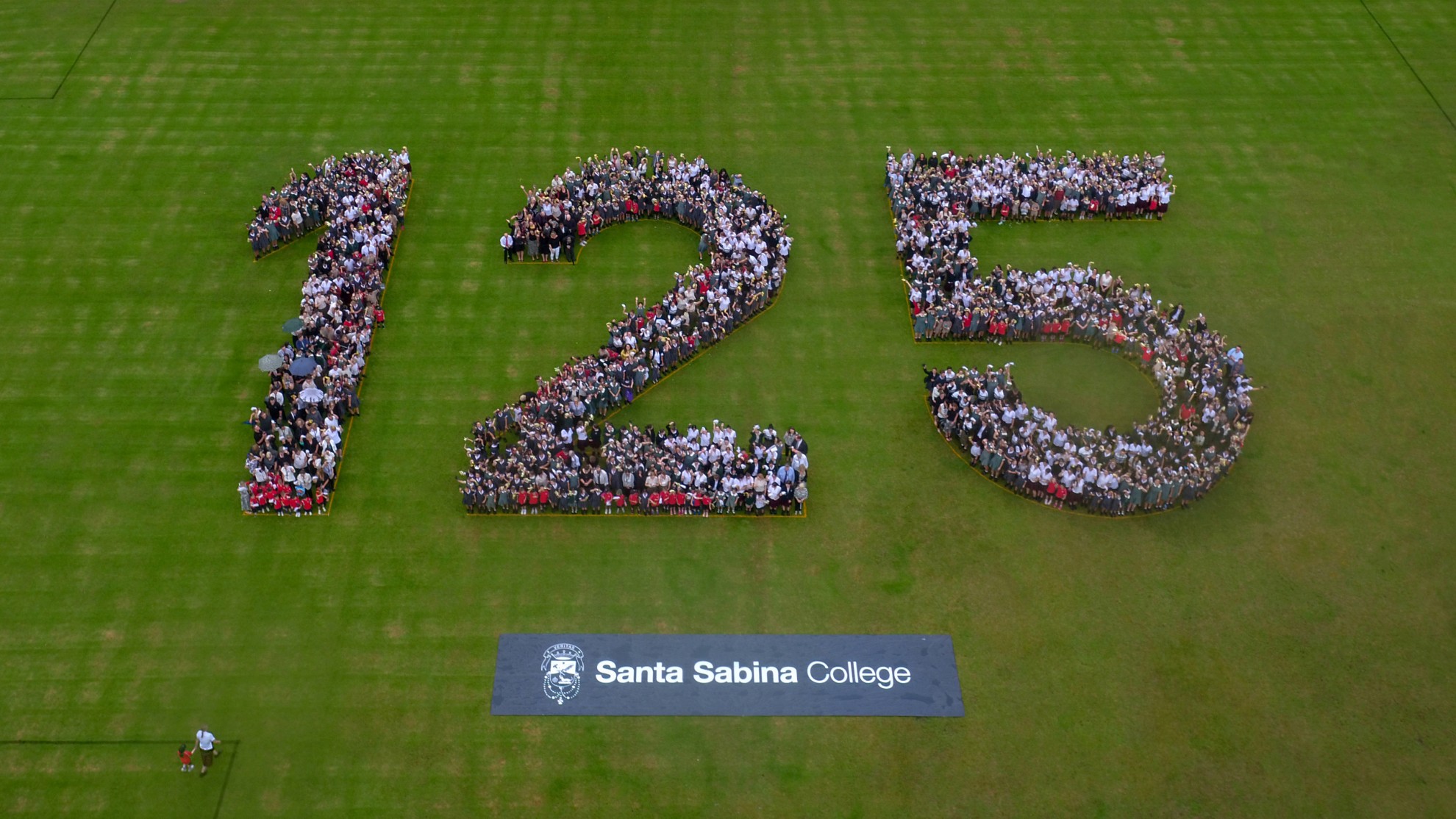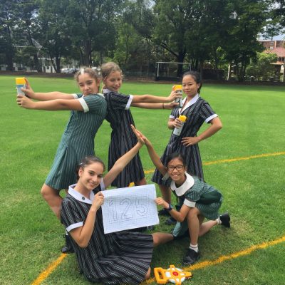 Known as The 125 project, the 15 Year 6 students learnt about Pi, ratio, rates and proportion to calculate answers to questions such as, ‘how could we fit 1400 people inside the numerals 1, 2 and 5’. On a rainy day in March 2019, all students from Prep to Year 12, together with the staff and Dominican sisters, successfully fitted into numeral shapes devised by the students. The event was filmed by drone in celebration of the school’s 125th anniversary.