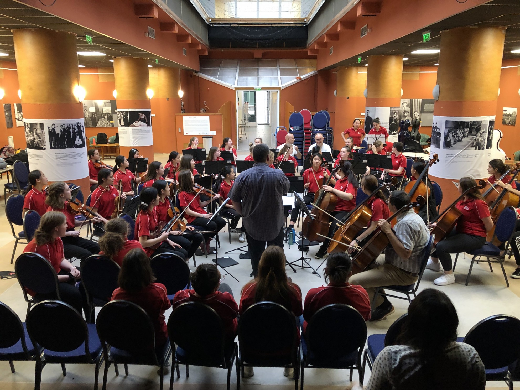 We came back at 4:00 and the orchestra rehearsed shortly before the concert started, we briefly ran through all the pieces we were playing. The concert was a massive success and we had so much fun. Afterwards we got to experience Hungarian Folk Dancing where we all had a ball, and it was the end to a great day!!